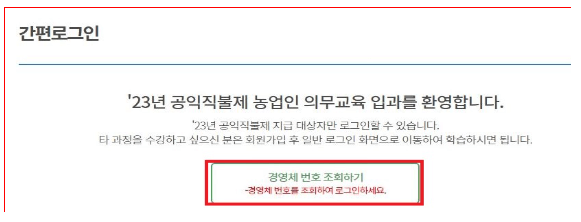 ③ 이름과 주민등록번호를 입력한 후 경영체번호로 로그인하기 클릭