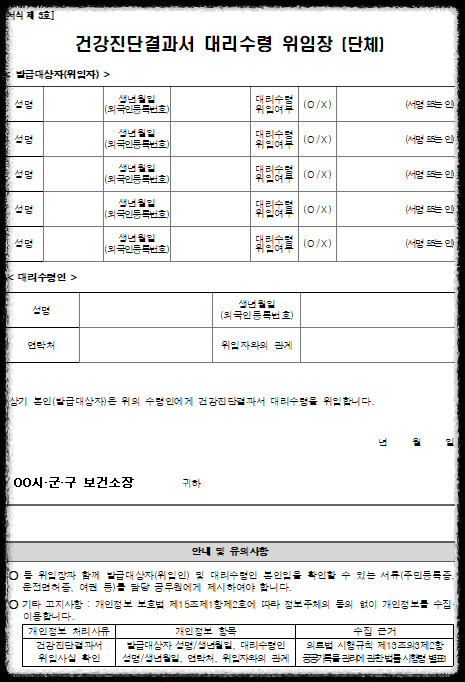 💡 보건증 대리수령위임장(단체)