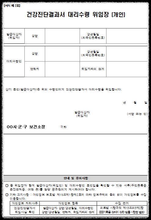 건강진단결과서 대리수령 위임장(개인).hwp
