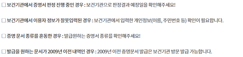 👉 조회되는 발급 가능 문서가 0건이라면 다음을 확인하시기 바랍니다.